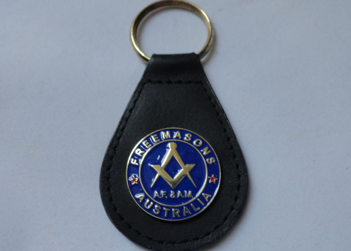 Aluminium, Stainless Steel, Soft PVC, Kuningan Freemason Kulit Gantungan Kunci dengan Die Stamping