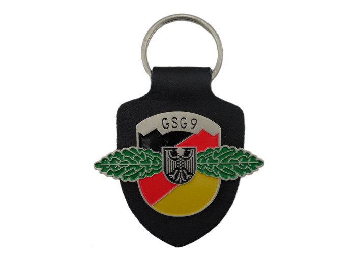 GSG9 Personalized Gantungan kunci kulit, gantungan kunci Promosi Dengan Logo dengan lembut Enamel Emblem
