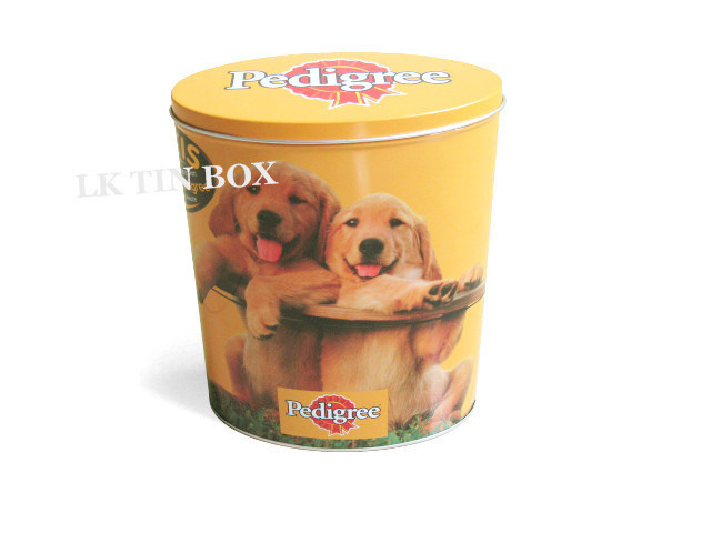 Caixa com gravação, lata de lata LFGB da lata do alimento de cão de estimação da cópia do presente